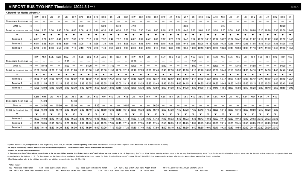 | 成田機場↔️新木場 | 約55分 | 新木場站 | 普通票價:1,500日圓,網路預購優惠票價:1,400日圓 | WILLER EXPRESS 股份有限公司 |