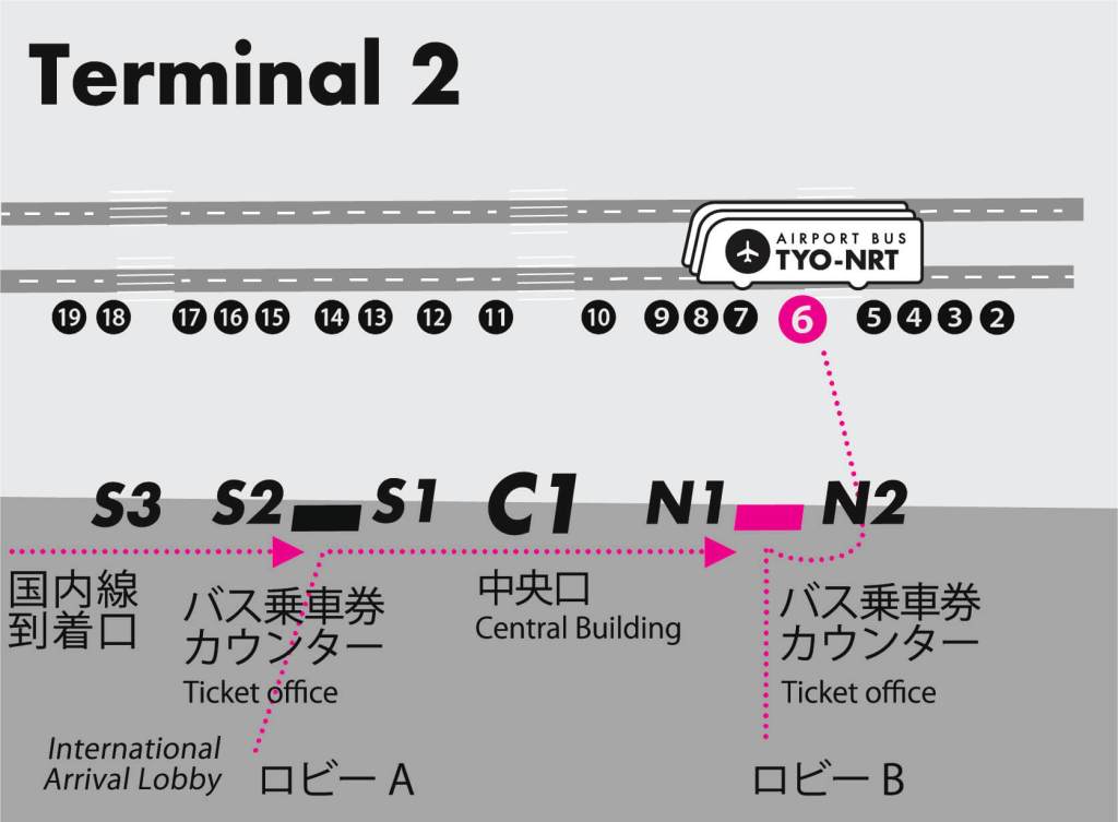 成田機場各航廈設有 LCB 專用巴士月台與售票處